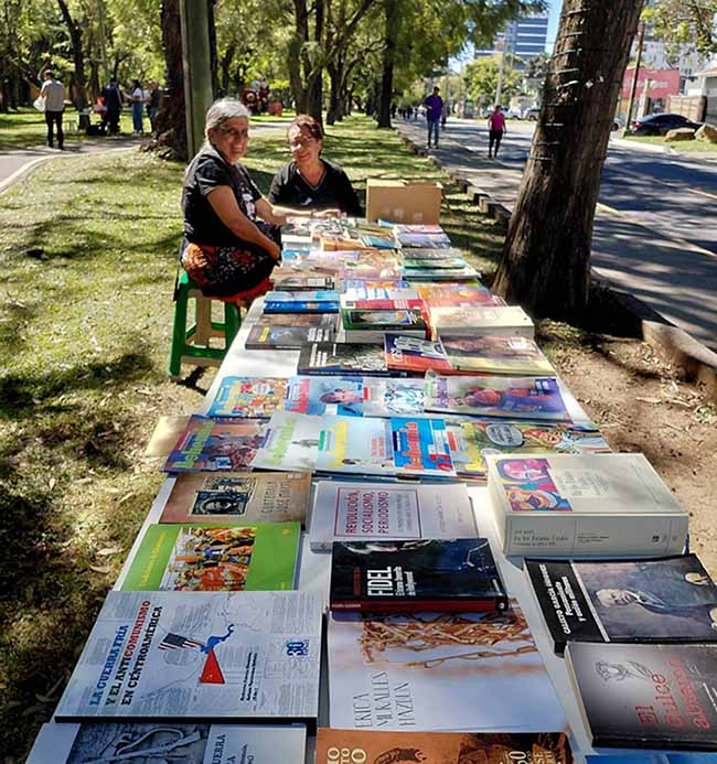 En el contexto de la siempre bien concurrida iniciativa municipal Pasos y Pedales, frente a la Plaza Jardín José Martí, el grupo de más de 50 personas de la mayor de las Antillas radicados aquí y chapines ofreció libros de literatura de la isla, revistas como Bohemia, entre otras.