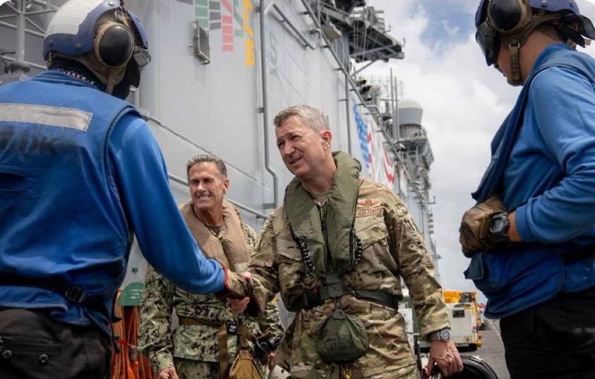 El alto cargo, principal asesor militar del presidente Donald Trump, visitó a los miembros de las fuerzas armadas estadounidenses que llegaron a Puerto Rico en los últimos meses, como parte del despliegue dirigido a amedrentar a los mandatarios Nicolás Maduro, de Venezuela, y Gustavo Pero, de Colombia, en una presunta guerra contra el narcotráfico.