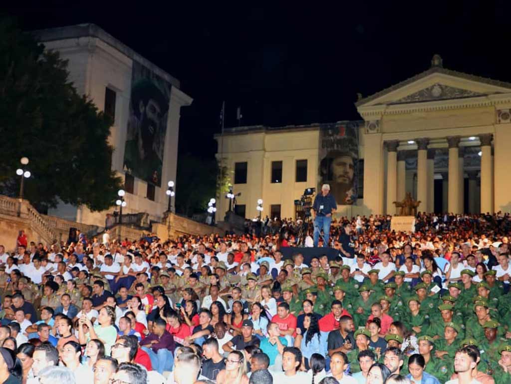 El presidente Miguel Dìaz-Canel participó del tributo político-cultural donde los jóvenes como protagonistas expresaron su compromiso con las enseñanzas del líder histórico de la Revolución cubana.