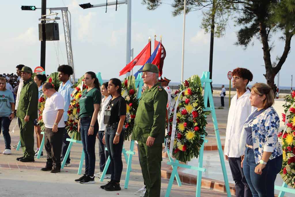 El acto contó con la presencia del presidente de la nación, Miguel Díaz-Canel, otros miembros del Buró Político y representantes de las organizaciones de masa y sociales, así como estudiantes que cursan la carrera de ciencias médicas, quienes marcharon desde la casa de altos estudios hasta el monumento erigido en el malecón habanero.