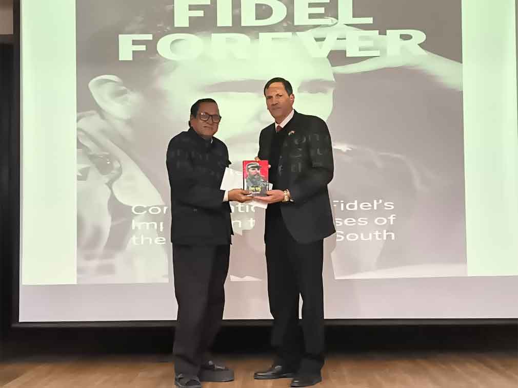En el evento, por el noveno aniversario de la desaparición física del líder histórico de la Revolución Cubana, Bijaya Kumar Padhikari, secretario general de la Sociedad India para la Cooperación Cultural y la Amistad (ISCUF), entregó al embajador cubano, Juan Marsán, su biografía sobre Fidel, escrita en idioma odia.