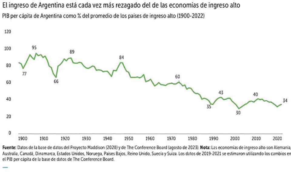 Buenos Aires, 1 dic (Prensa Latina) Argentina es el único país entre los más grandes de la región, cuyo ingreso per cápita es hoy menor que hace una década, aunque se mantiene entre los cuatro primeros pese a seguir bajando este año, señala un boletín técnico.