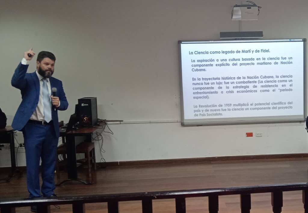 El científico Fidel Antonio Castro Smirnov, académico titular de la Academia de Ciencias de la isla, conversó este miércoles con estudiantes y profesores de ese centro de altos estudios, así como con amigos de Cuba, sobre la educación, la ciencia y el desarrollo en función de la sociedad.