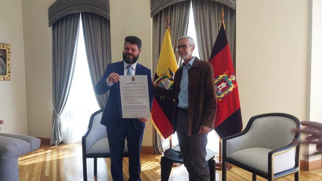 En ese contexto, el municipio de Quito, a través del concejal Héctor Cueva y el secretario de Salud, Miguel Malo, entregaron esta tarde un reconocimiento al representante de la ciencia cubana por su trayectoria, esfuerzo y dedicación, así como por su participación en el evento de la ELAM.