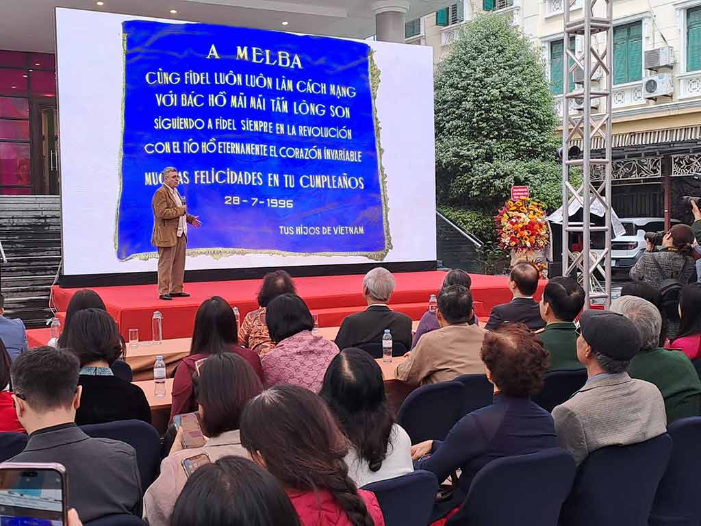 Además, la directora del museo recibió de manos de Manuel Montané, sobrino de la heroína Melba Hernández, quien durante años encabezó el ferviente y permanente apoyo a la causa vietnamita, una bandera que le obsequiaran en 1996 los estudiantes vietnamitas en ocasión de su cumpleaños.