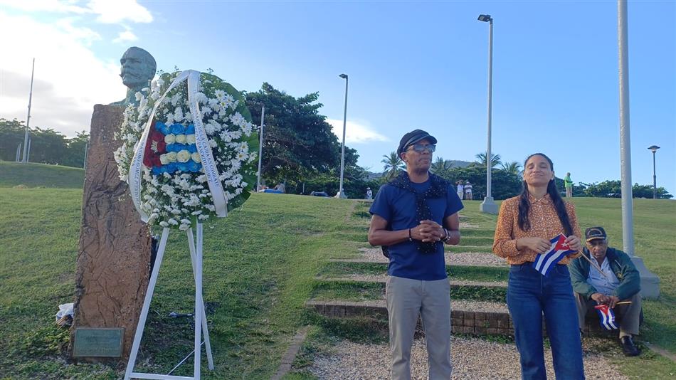Una ofrenda floral fue colocada en el monumento dedicado a Maceo en el parque La Puntilla, en esta ciudad de la costa norte del país, en una sencilla ceremonia encabezada por el embajador de Cuba, Ángel Arzuaga, quien destacó los vínculos históricos entre ambos pueblos.