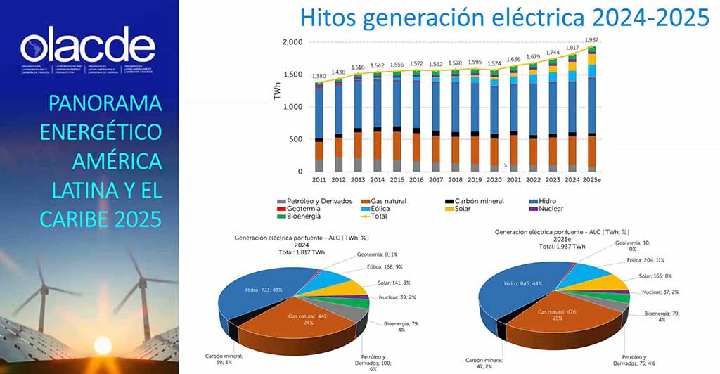 La Organización Latinoamericana y Caribeña de Energía (Olacde) presentó este martes el Panorama Energético de la región en 2025, publicación anual que reúne estadísticas oficiales de los 27 países miembros y analiza las principales tendencias, desafíos y proyecciones de la transición energética.
