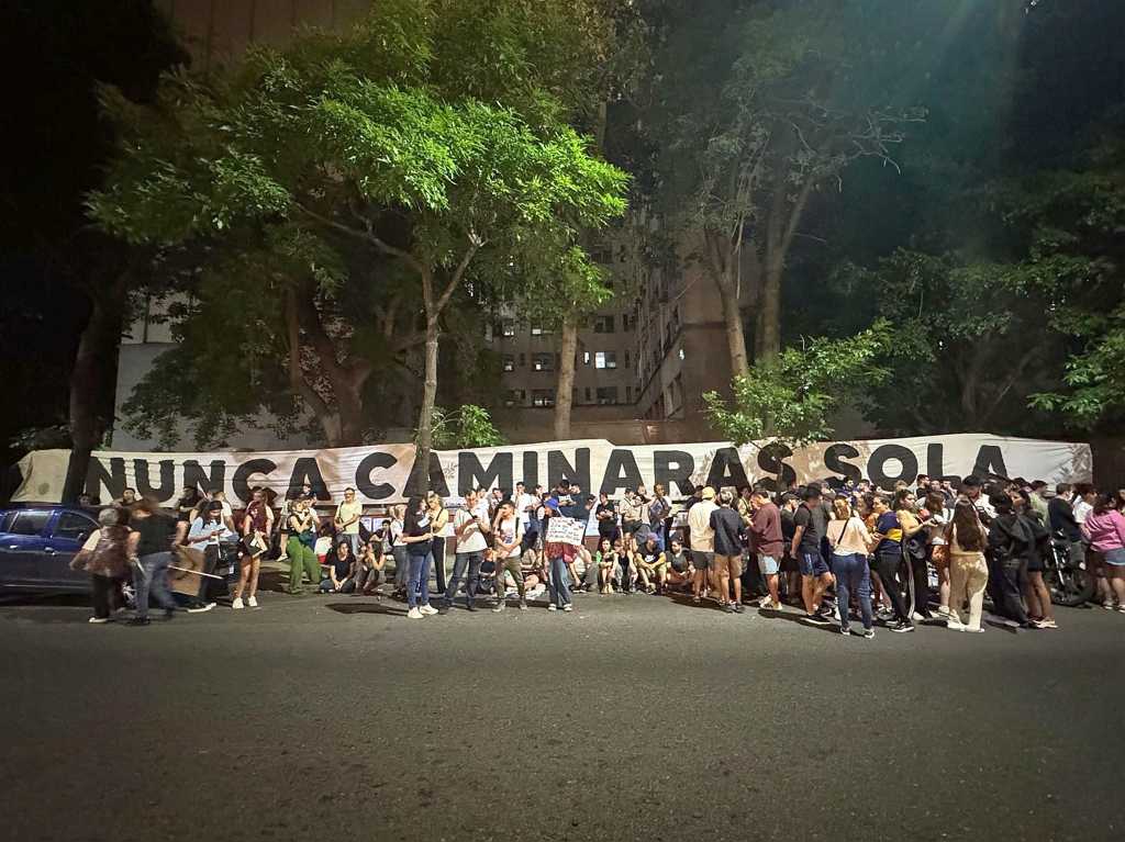 “Nunca caminarás sola”, afirma una enorme pancarta que los militantes colocaron en una verja de hierro en la acera opuesta a la entrada del sanatorio.