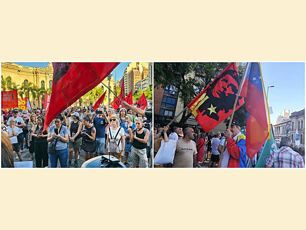 La manifestación, bajo la consigna “Fuera Yanquis de Venezuela y América Latina”, fue convocada por el Movimiento Socialista de los Trabajadores (MST), el Frente de Izquierda (FIT) y la Liga Internacional Socialista (LIS), que llenaron las calles de banderas y pancartas.