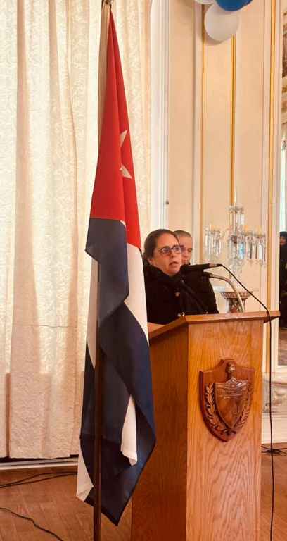 Con emoción y fervor, todos los integrantes de la representación diplomática cantaron las notas del Himno Nacional y exclamaron vivas a Cuba, a la Revolución y a sus líderes.