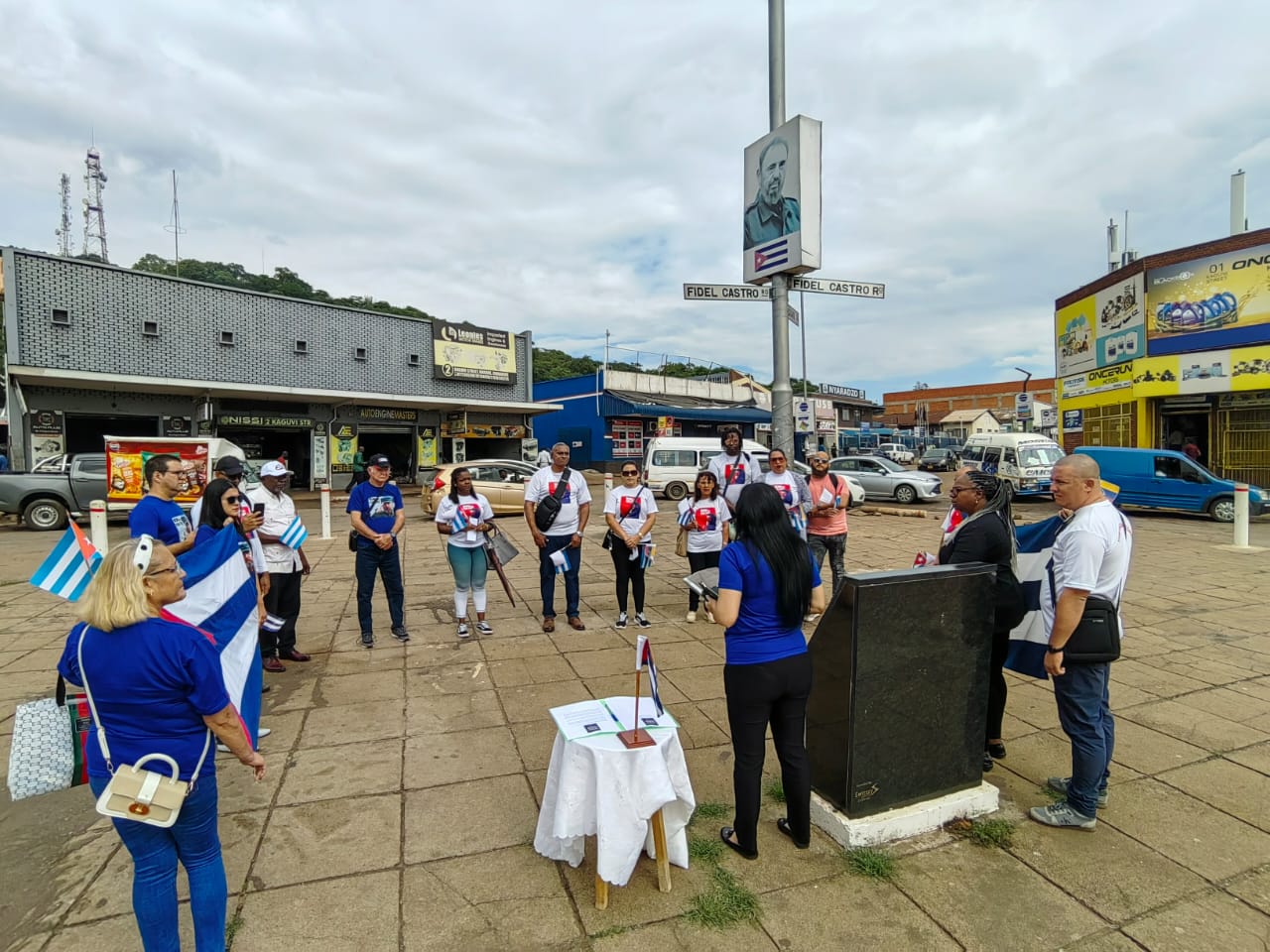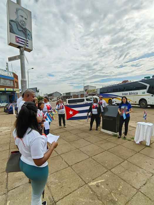 Inspirados por el pensamiento y acción del Líder Histórico de la Revolución, Fidel Castro, en la calle y monumento que llevan su nombre en Harare, los miembros de la Misión diplomática y de la Brigada Médica exaltaron la valentía de sus compatriotas caídos en la nación sudamericana en el cumplimiento del deber.