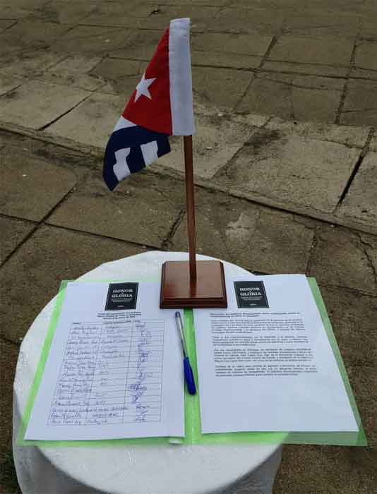 El homenaje a los mártires culminó con la firma por todos los integrantes de la Misión Estatal de la isla antillana del Compromiso con la Patria.