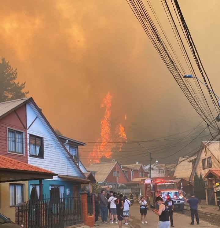 De los 24 incendios reportados a nivel nacional, 14 están en ambas regiones, donde 24 aeronaves laboran en el control de las llamas, apoyadas por equipos de bomberos y de la Corporación Nacional Forestal.