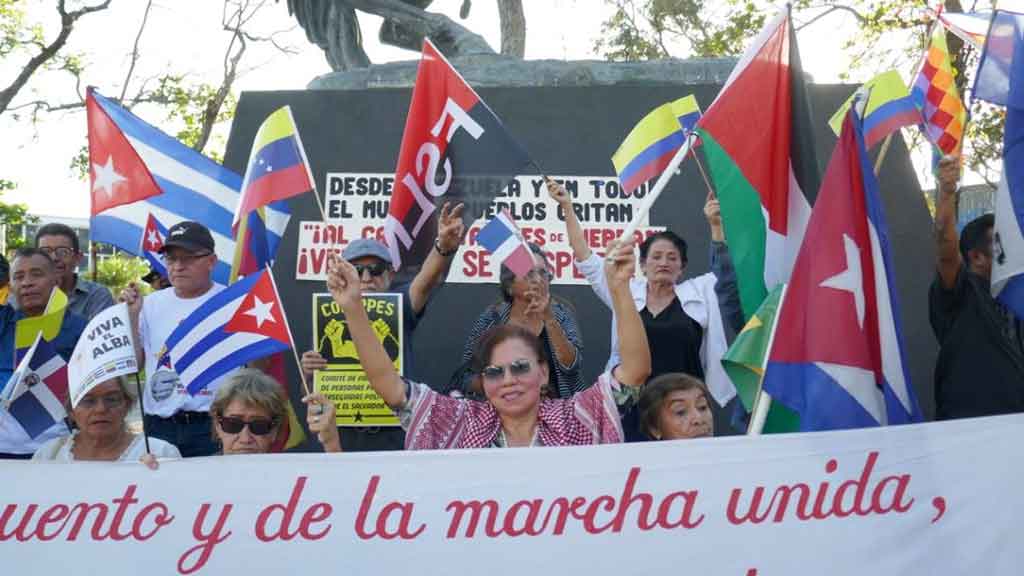 Carlos Martínez, dirigente sectorial del FMLN en esta capital, condenó enérgicamente la agresión fascista. “Maduro enfrenta en las entrañas del imperio un juicio ilegal que violenta el derecho internacional y la soberanía de Venezuela”, remarcó el activista.