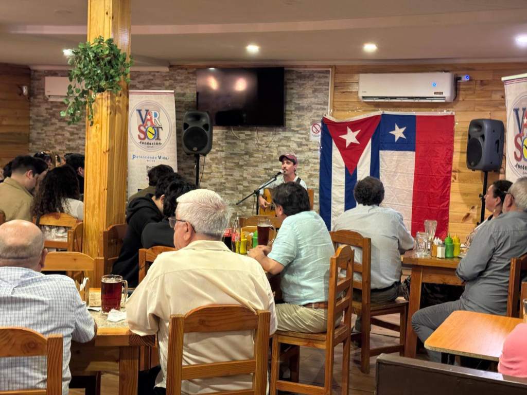 Heredero de los grandes trovadores, como Silvio Rodríguez y Pablo Milanés, el joven músico y compositor se presentó en el K´runga Restobar, donde compartió escenario con la cantora chilena Fabiola Sheihing, en una noche de solidaridad con Cuba.