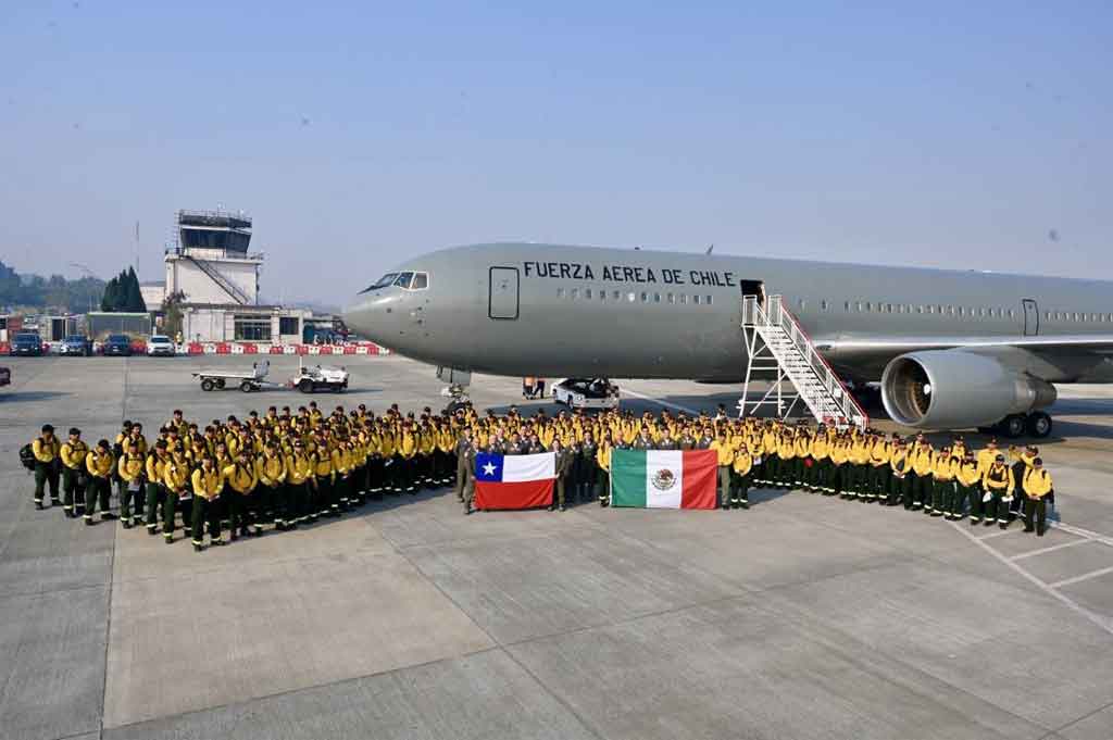 El envío del contingente fue anunciado hace un par de días por la presidenta de México, Claudia Sheinbaum, y su arribo se logró gracias a la coordinación entre la Cancillería, el Ministerio de Defensa, la Fuerza Aérea de Chile y la Corporación Nacional Forestal (Conaf).