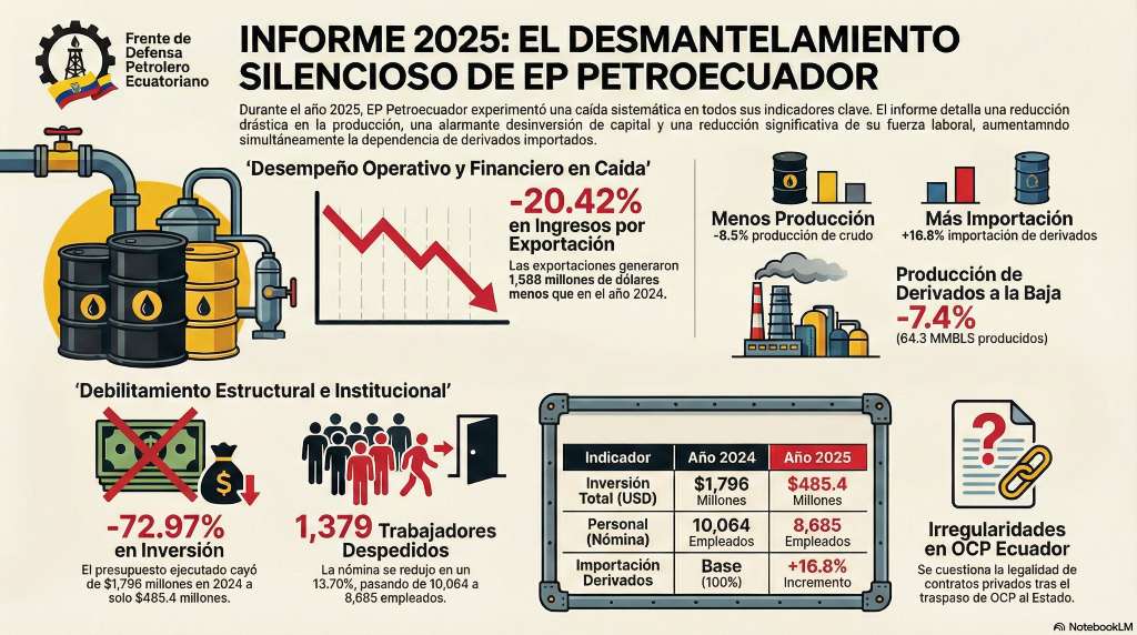 Frente alerta sobre “desmantelamiento silencioso” de Petroecuador