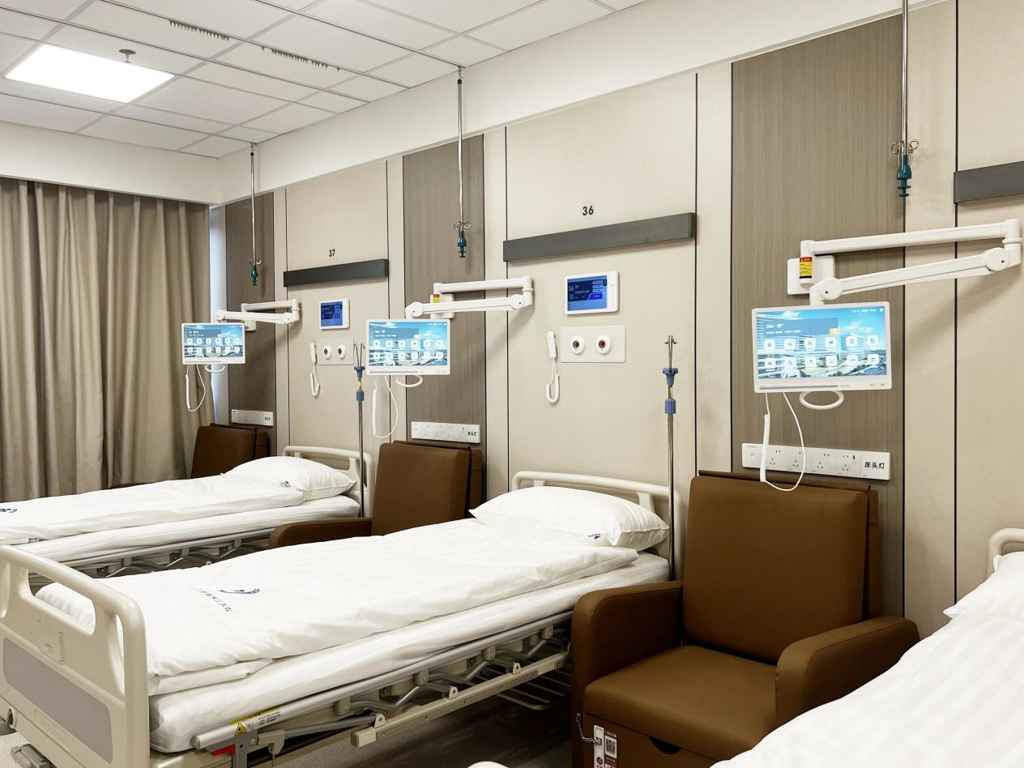 Un sistema inteligente de monitorización de infusiones sincroniza el progreso de las infusiones en todas las camas, mientras que un radar de ondas milimétricas y dispositivos portátiles monitorizan simultáneamente la frecuencia cardíaca y la respiración.