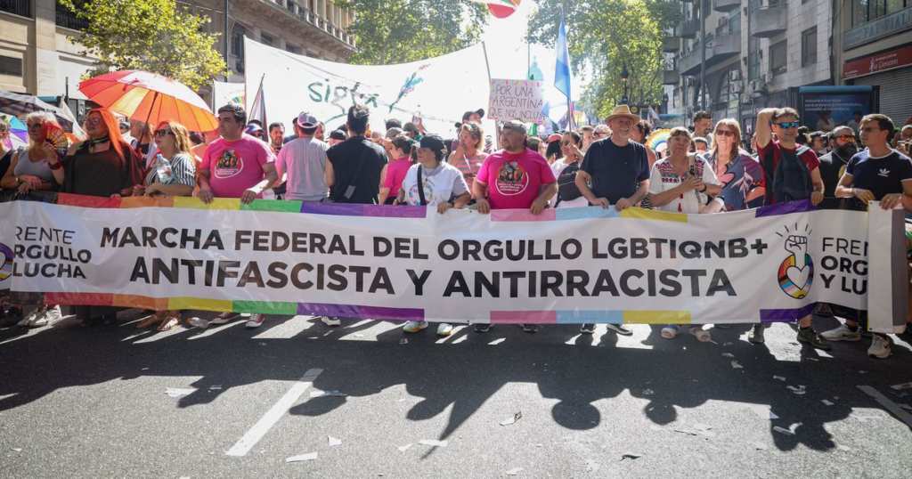 La Marcha del 7F a partir de las 17:00 hora local propone un lenguaje político con la solidaridad en el centro y contra las expresiones de racismo y fascismo, y tiene lugar a un año de que el presidente Javier Milei dijera en Davos que los homosexuales eran pedófilos y que la ideología de género era un cáncer que había que extirpar.