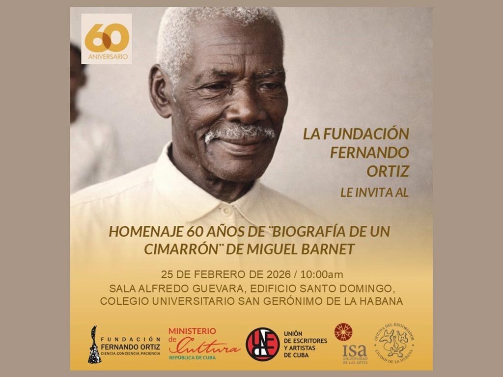 El foro académico “Biografía de un cimarrón (1966-2026): una obra de emancipación cultural”, será parte de las actividades por el aniversario 30 de la Fundación Fernando Ortiz y tendrá lugar en la sala Alfredo Guevara del edificio Santo Domingo, del Colegio Universitario de San Gerónimo de La Habana.