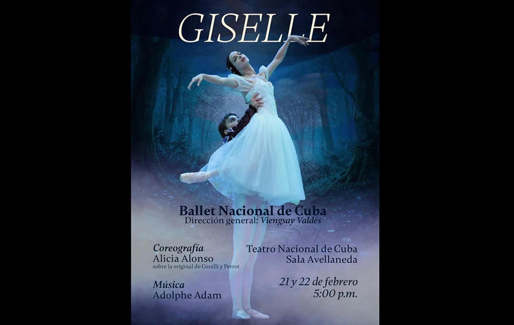 La sala Avellaneda del Teatro Nacional acogerá la función de este sábado protagonizada por dos experimentados primeros bailarines, Viengsay Valdés y Dani Hernández, mientras los jóvenes Yunior Palma y Ana Pessino asumirán los papeles de Hilarión y la Reina de las Wilis.
