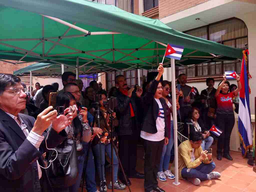 Pérez resaltó la sólida respuesta a la convocatoria del Movimiento Boliviano de Solidaridad con Cuba-La Paz de embajadores, otros diplomáticos acreditados y, en particular, una representación del Grupo Latinoamericano y Caribeño en Bolivia, junto a quienes se encontraban cientos de integrantes de agrupaciones políticas y movimientos sociales, así como artistas, intelectuales y medios de prensa.