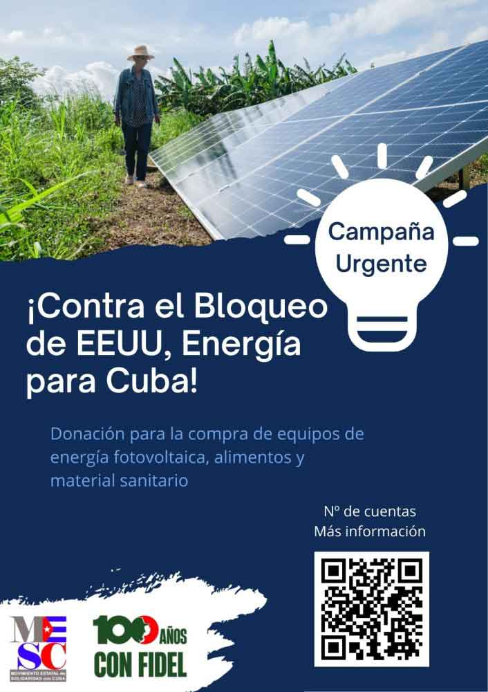 Bajo el lema «Contra el Bloqueo de EEUU, Energía para Cuba», la campaña estará activa hasta el 30 de abril e incluye denuncia política, movilizaciones, y acción material.