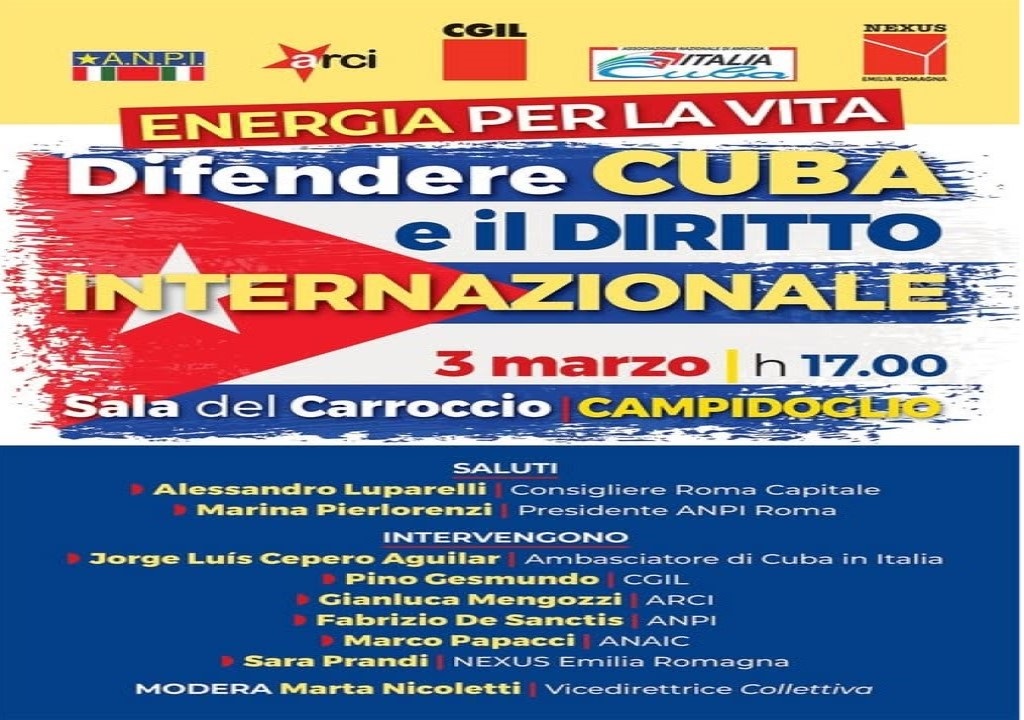 Este último, presidente de la ANPI de Roma, recordó que la actual campaña de apoyo a Cuba se realiza en el marco de la celebración del centenario del natalicio del líder histórico de la Revolución cubana, Fidel Castro, por lo que cobra un especial significado.