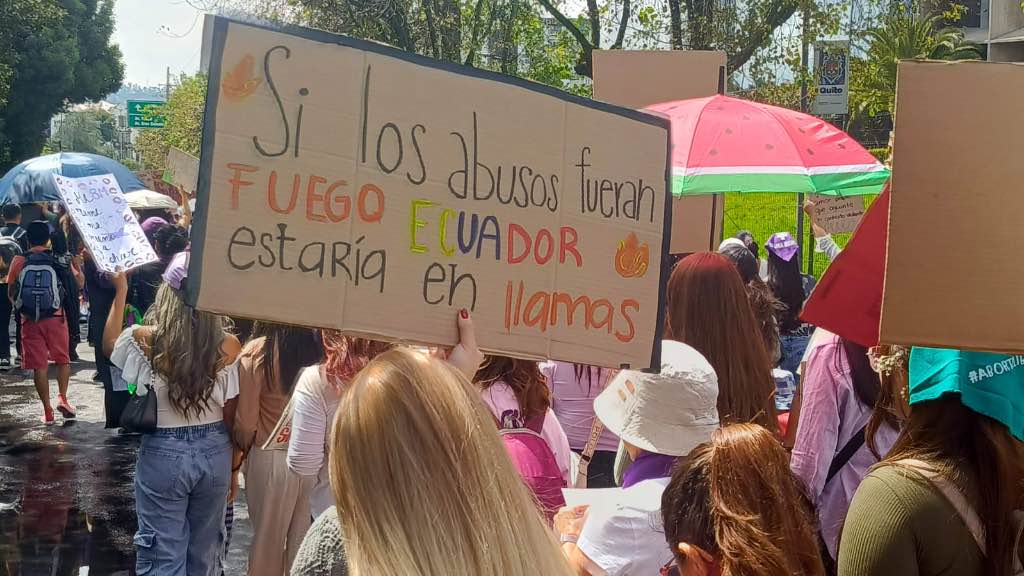 Durante el recorrido, las manifestantes denunciaron desigualdades persistentes en el país y expresaron críticas al gobierno del presidente Daniel Noboa, al que responsabilizaron de profundizar la precarización social y la falta de garantías para los derechos de las mujeres.