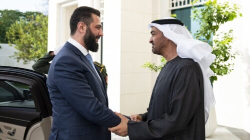 Abu Dabi, 23 abr (Prensa Latina) El presidente de Siria, Ahmed al-Sharaa, sostuvo hoy conversaciones con su homólogo de Emiratos Árabes Unidos (EAU), Mohammed bin Zayed Al Nahyan, centradas en la seguridad regional y el fortalecimiento de la cooperación económica.