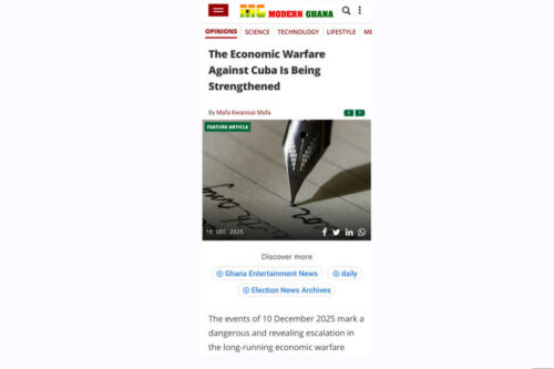 Harare, 17 dic (Prensa Latina) El coordinador de la Cátedra Fidel Castro adjunta a la Universidad Midlands de Zimbabwe, Mafa Kwanisai Mafa, denunció hoy la intensificación de la guerra económica contra Cuba tras la reciente incautación del petrolero venezolano.