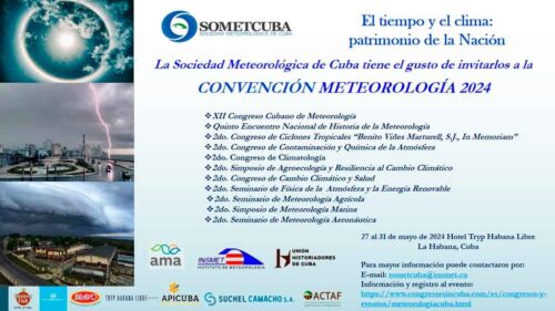 La Habana, 27 may (Prensa Latina) Delegados de Argentina, Colombia, Cuba, España, Estados Unidos, México y Paraguay se darán cita desde hoy, y hasta el viernes, en la Convención Meteorología 2024 en esta capital, convocados por la Sociedad Meteorológica de Cuba (SometCuba).
