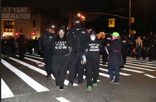 Washington, 24 abr (Prensa Latina) Cientos de estudiantes de pie, entrelazados, muchos con pañuelos palestinos sobre sus cuellos, se mantienen plantados ante decenas de policías de Los Ángeles que ingresaron hoy a dispersar la protesta en la Universidad del Sur de California (USC).