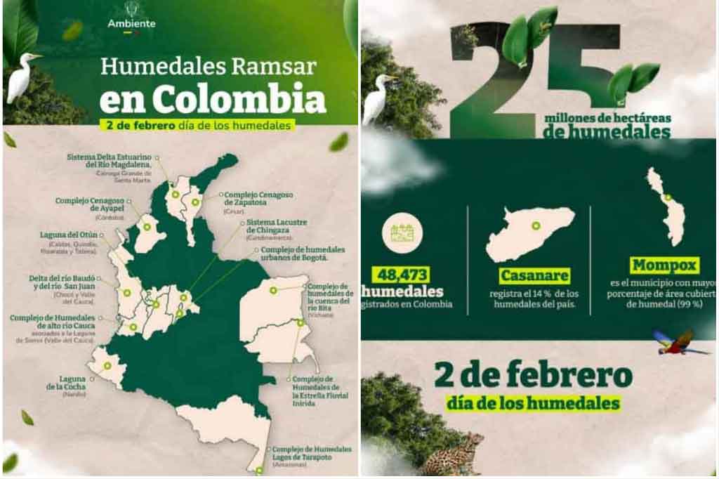 Bogotá, 2 feb (Prensa Latina) El Gobierno de Colombia desarrolla diferentes acciones de conservación y restauración de los humedales en el país, de la mano de las comunidades y con el fortalecimiento de la educación ambiental, informó hoy el Ministerio de Ambiente.