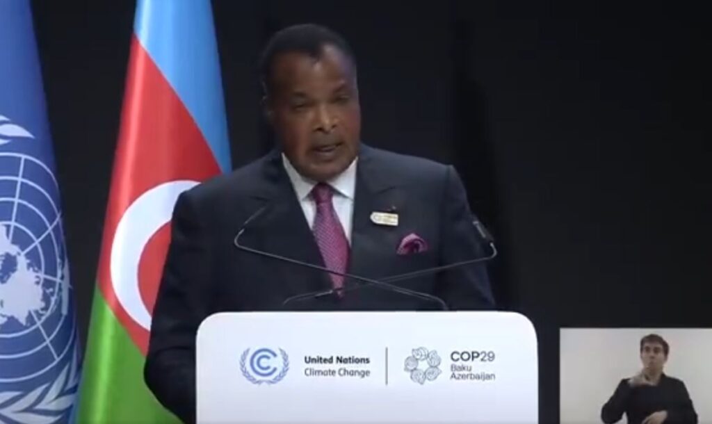 Brazzaville, 13 nov (Prensa Latina) El presidente del Congo, Denis Sassou-N’Guesso, defendió la justicia climática y la valorización del capital natural bruto de cada país durante su discurso en la COP29, resaltó hoy un comunicado de la Presidencia.
