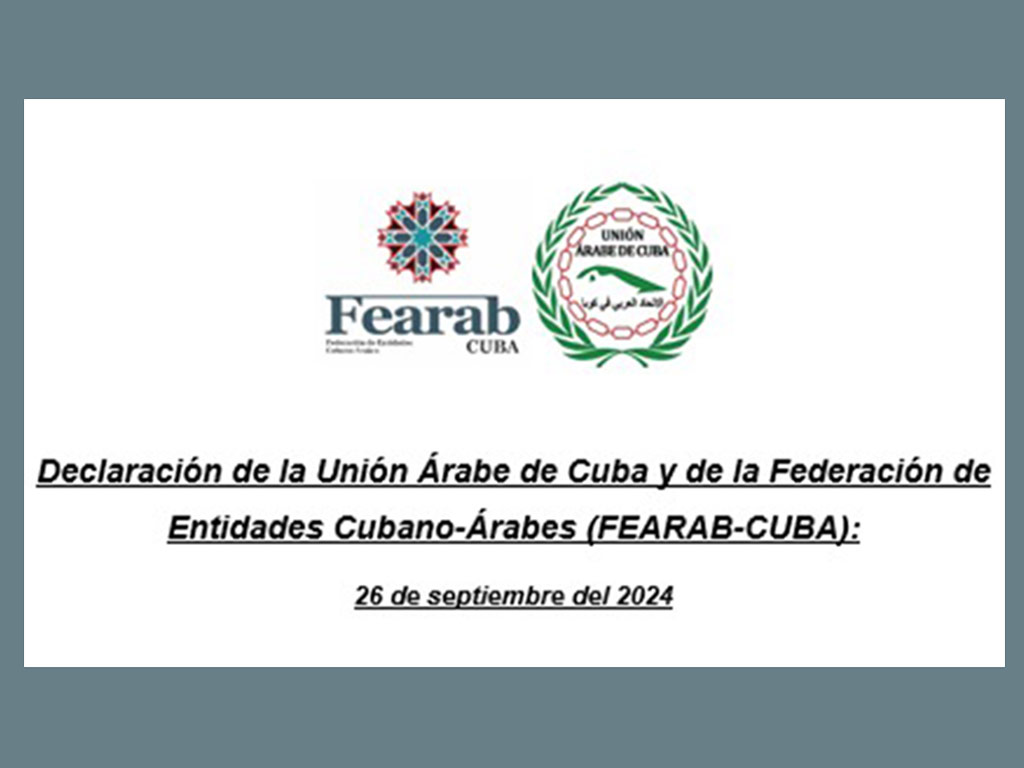La Habana, 26 sep (Prensa Latina) La Unión Árabe de Cuba y la Federación de Entidades Cubano-Árabes llamaron hoy a la unidad para detener la agresión del estado sionista de Israel contra Palestina y El Líbano.