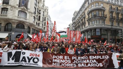 Madrid, 1 may (Prensa Latina) Cientos de miles de españoles se manifestaron hoy en numerosas ciudades del país, a propósito del Día Internacional de los Trabajadores, con reivindicaciones de pleno empleo.