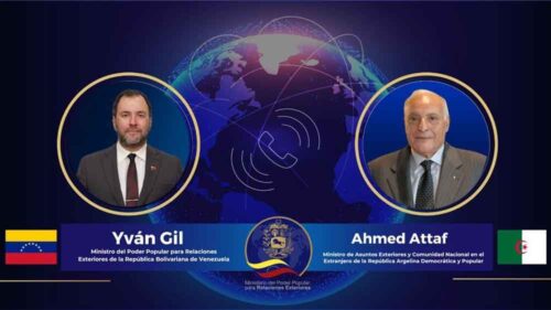 Caracas, 13 abr (Prensa Latina) El ministro para Relaciones Exteriores de Venezuela, Yván Gil, sostuvo hoy un diálogo telefónico con su homólogo de Argelia, Ahmed Attaf.