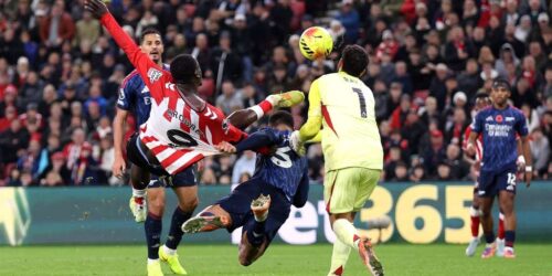 Sunderland, Reino Unido, 8 nov (Prensa Latina) El Sunderland, en su casa del Stadium of Light, consiguió hoy un empate a dos goles con el líder Arsenal y ascendió al tercer lugar de la Liga Inglesa de fútbol (Premier League).