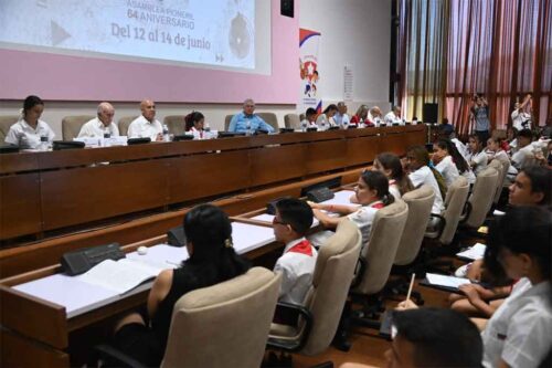 Concluyó Asamblea Nacional de Pioneros de Cuba (+Fotos) junio 14, 2025 La Habana, 14 jun (Prensa Latina) Bajo el lema Unidos por Cuba concluyó hoy en esta capital la Asamblea Aniversario 64 de la Organización de Pioneros José Martí.