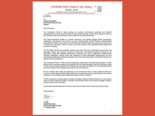 Reafirma Partido Comunista de India solidaridad con Cuba