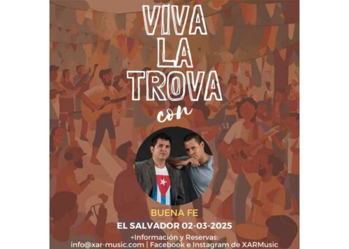 Viva la Trova convoca a dúo cubano Buena Fe a El Salvador (+Foto) febrero 10, 2025 San Salvador, 10 feb (Prensa Latina) El dúo cubano Buena Fe será la oferta principal del espacio Viva la Trova que se celebrará el 2 de marzo próximo en la Universidad Centroamericana José Simeón Cañas (UCA), indicó hoy el comité organizador.