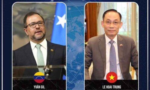 Venezuela y Vietnam reafirman valores compartidos enero 30, 2026 Caracas, 30 ene (Prensa Latina) El canciller de Venezuela, Yván Gil, y de Vietnam, Le Hoai Trung, sostuvieron hoy una llamada telefónica en la cual reafirmaron los valores que los unen.