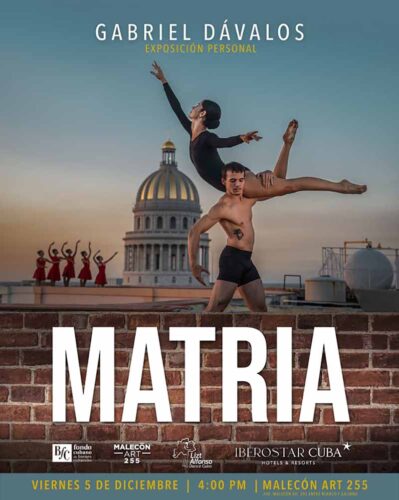 La Habana, 1 dic (Prensa Latina) Una selección de fotos de bailarines de varias de las principales compañías de danza del país protagonizarán la exposición “Matria”, del fotógrafo Gabriel Dávalos, por invitación de Lizt Alfonso Dance Cuba (LADC).