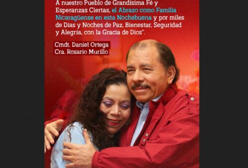 Managua, 24 dic (Prensa Latina) El presidente Daniel Ortega y la vicemandataria, Rosario Murillo, transmitieron hoy sus saludos a las familias nicaragüenses a propósito de las celebraciones por nochebuena y Navidad.