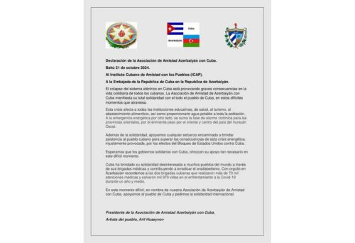 Amigos de Azerbaiyán piden solidaridad internacional con Cuba