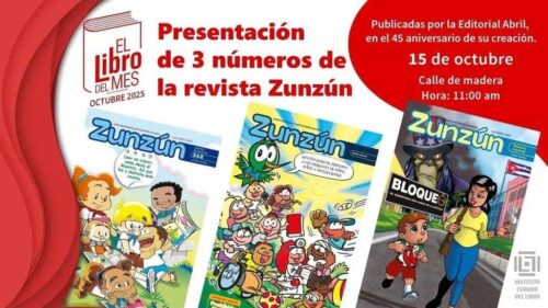 La Habana, 13 oct (Prensa Latina)La Casa Editora Abril y el Instituto Cubano del Libro (ICL) presentarán el próximo miércoles en el espacio Libro del mes tres números de la Revista ZunZún, hoy una de las publicaciones seriadas por excelencia del público infantil.