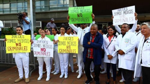 Santo Domingo, 18 abr (Prensa Latina) Cientos de médicos dominicanos protestaron hoy en las afueras de la Suprema Corte de Justicia (SCJ), en rechazo a las recientes sanciones emitidas contra centros hospitalarios, acusados de malas prácticas.