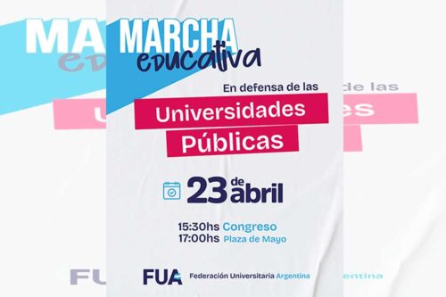 Buenos Aires, 22 abr (Prensa Latina) Mañana seremos miles en las calles y el pueblo demostrará que no renuncia a una educación pública, gratuita y de calidad, por nuestro desarrollo y soberanía, aseveró el secretario de la Federación Universitaria Argentina (FUA), Tomás Battaglino.
